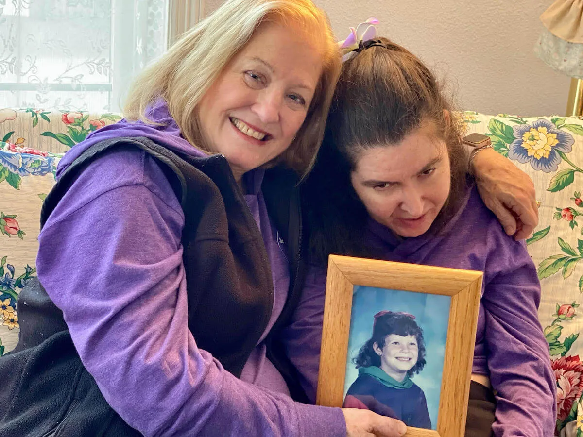 Today, Lindy is 41 years old. When she was diagnosed, she was supposed to die in her 20s. She can't speak. She's fed through a G-tube. She is in a wheelchair. But she still smiles. She still enjoys being around people and loves traveling. You can look in her eyes, and you can tell she’s very much there.